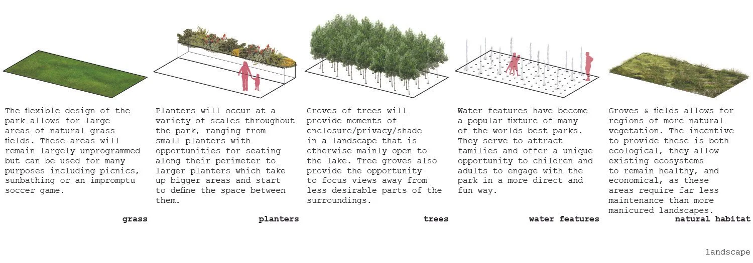 Direct Connections to the Waterfront and Beaches: Emphasis on physical and visual access to the lake guides the spatial organization of the park, reinforcing a constant connection to water.